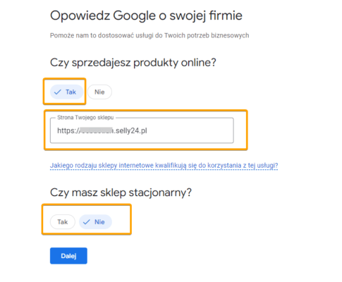 • W odpowiedzi na pytanie „Czy sprzedajesz produkty online?”, zaznacz „Tak” .
