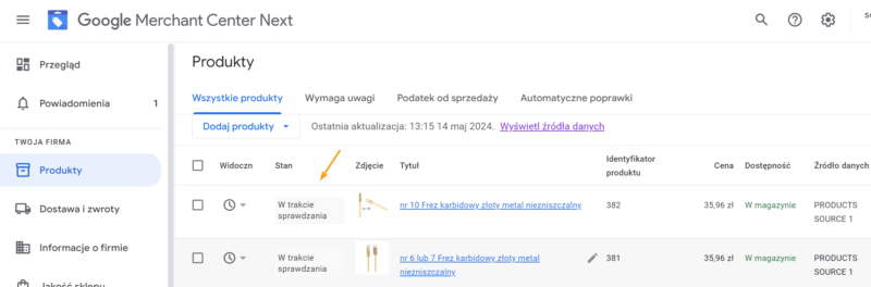 • Po dodaniu produktów, sprawdzich ich stan w GMC w zakładce Produkty