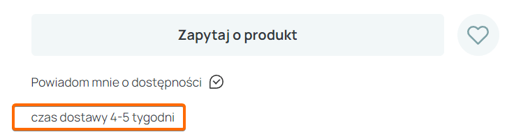 Jeżeli stan na magazynie będzie równy 0, na karcie produktu pojawi się komunikat Zapytaj o produkt.