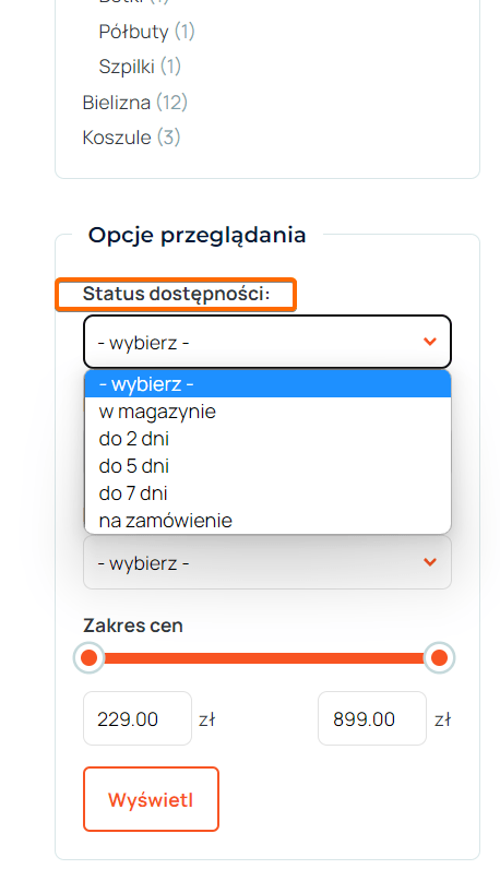 Statusy dostępności produktów