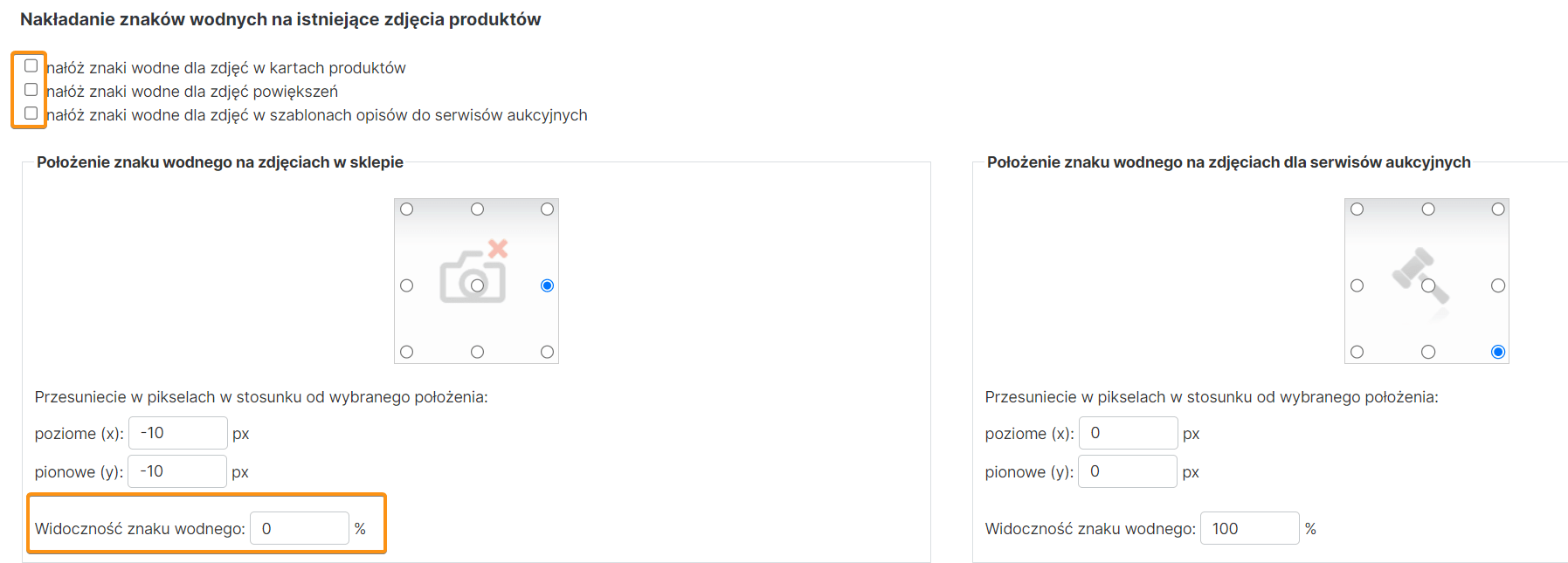 ? W zakładce Nakładanie znaków wodnych na istniejące zdjęcia produktów definiujemy, dla jakich zdjęć chcemy usunąć znaki wodne.