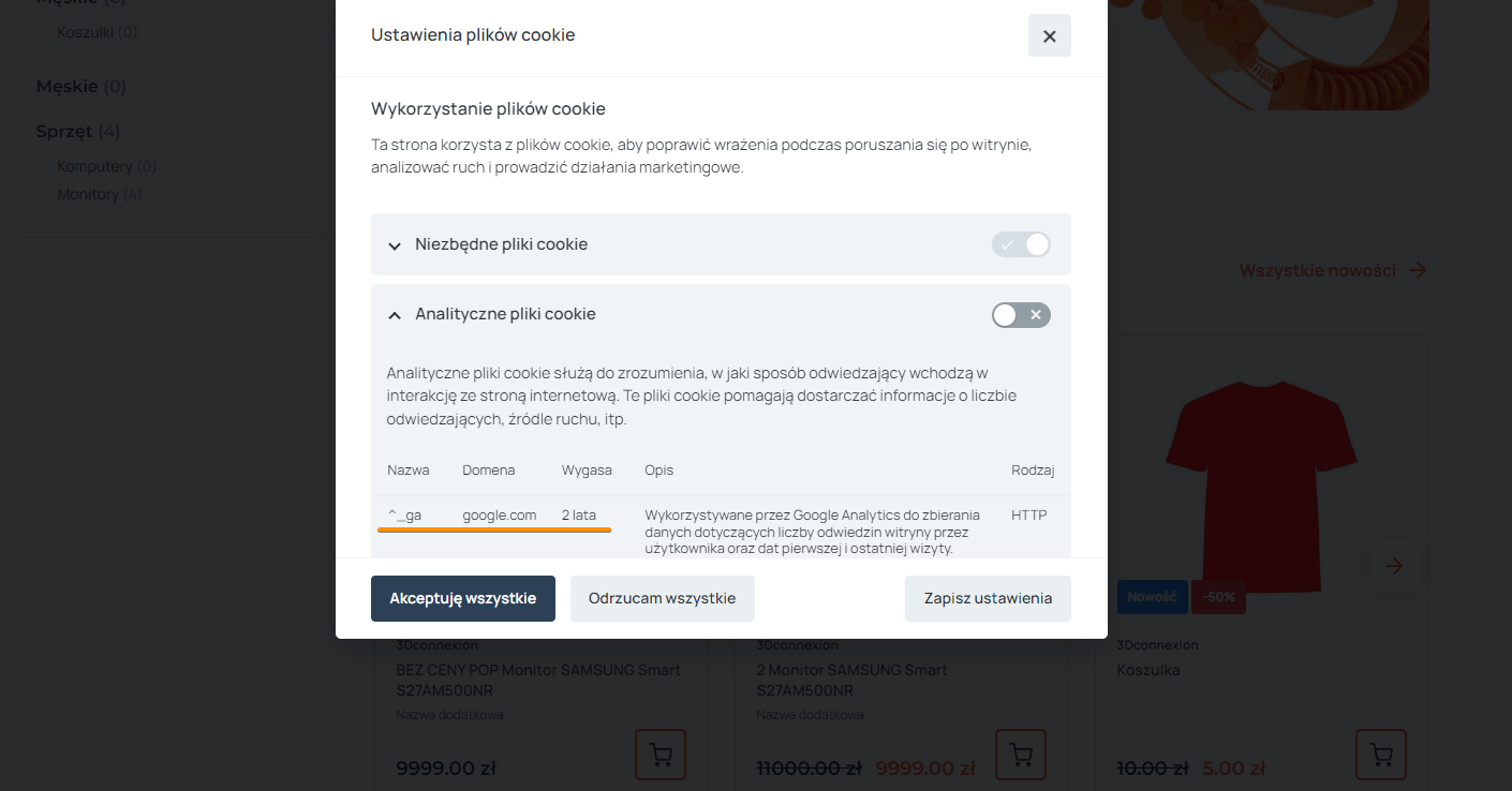 ? Moduł obsługuje również pliki cookies integracji włączanych w panelu sklepu: Google, Facebook pixel. Po włączeniu tych integracji dodane zostaną automatycznie niestandardowe zgody cookies, umożliwiające klientom wybór akceptacji poszczególnych plików cookies.