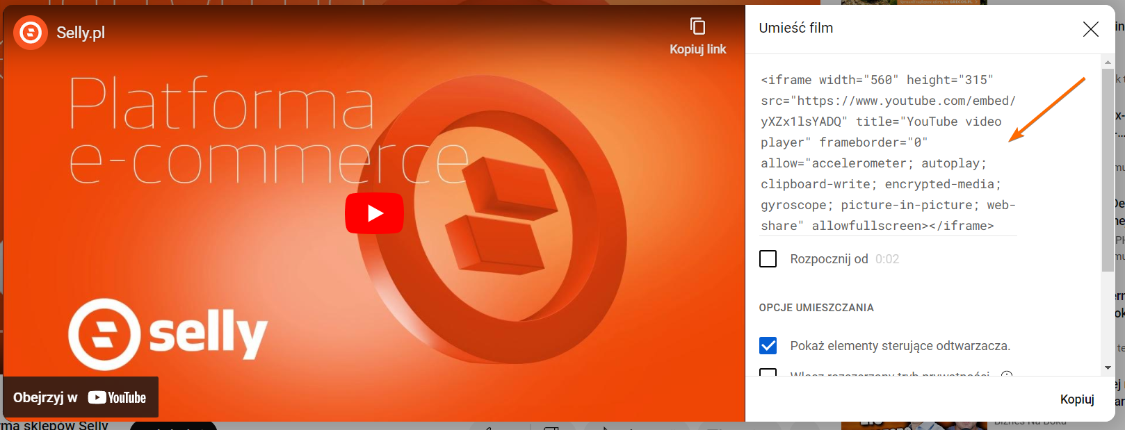 - Skopiuj kod HTML z pola, które się pojawi: