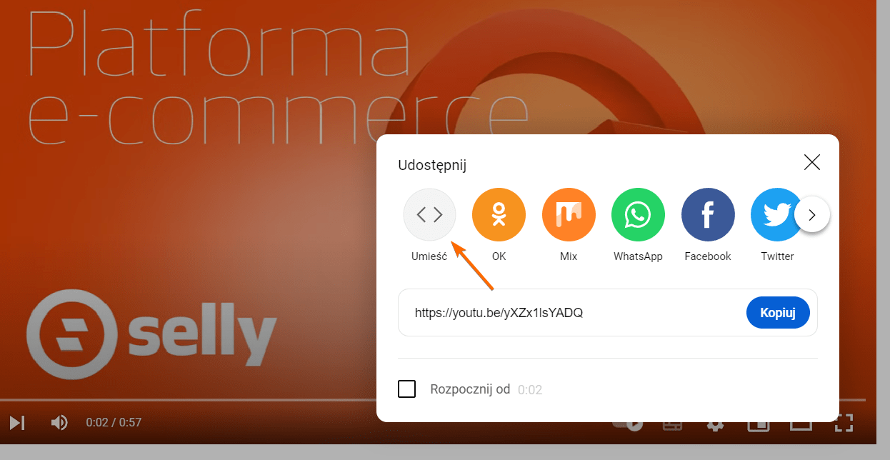 - Otwórz film w YouTube który chcesz umieścić.