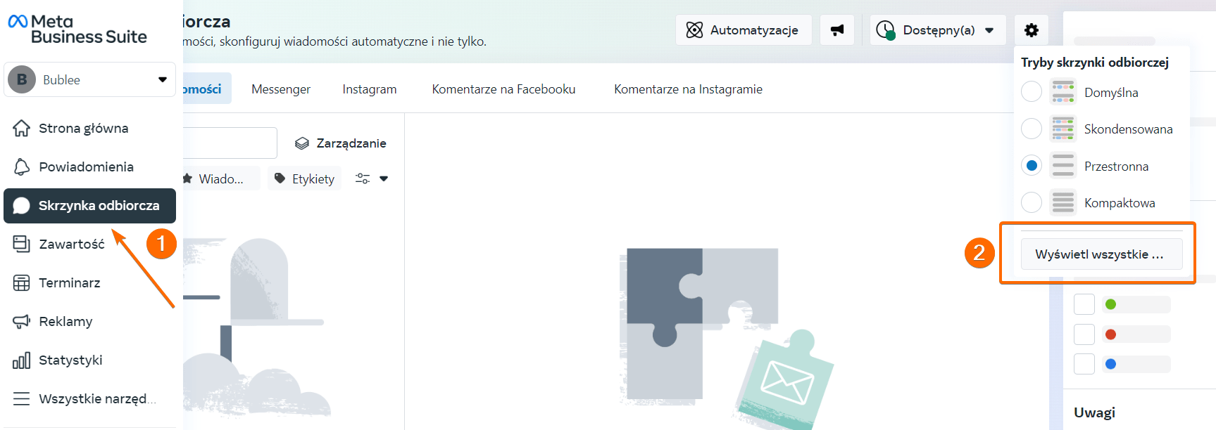 ? Zaloguj się do swojego konta i w prawym górnym rogu wybierz Meta Business Suite: