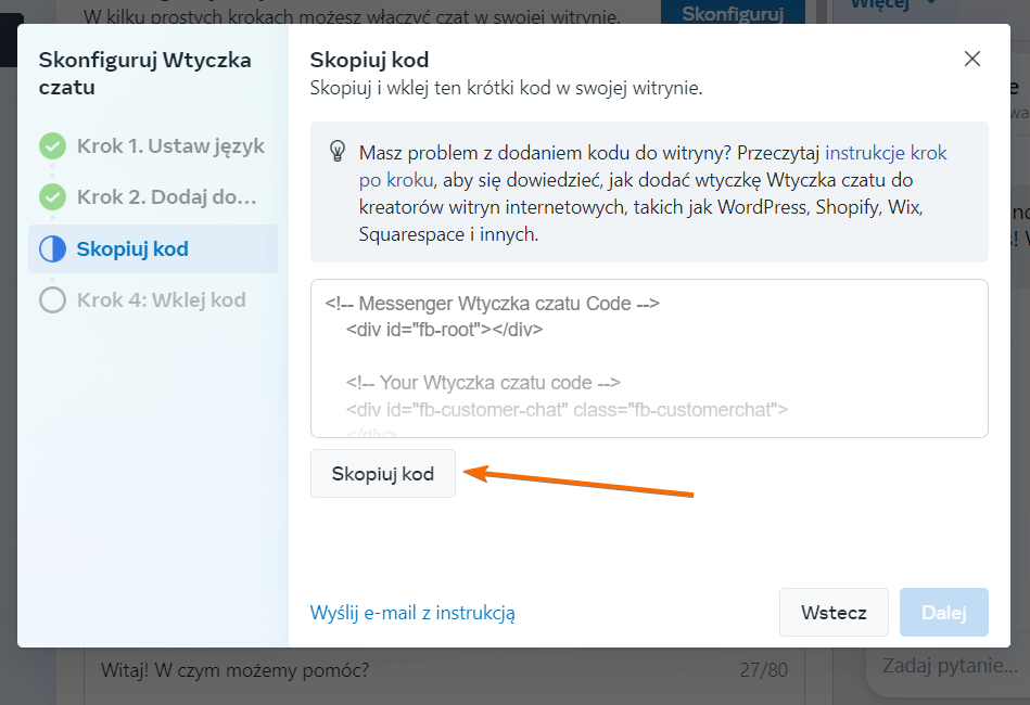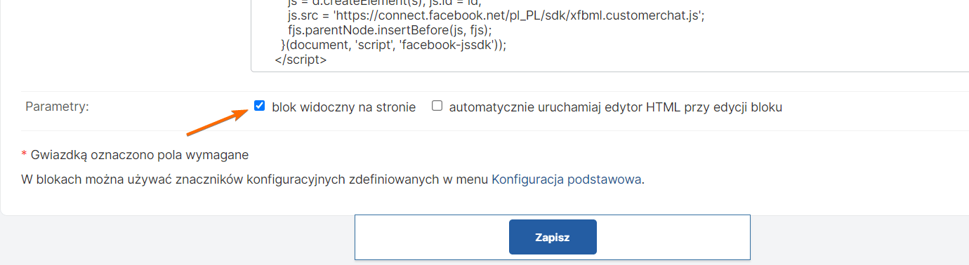 Po założeniu konta w wybranym livechat należy wygenerować kod widżetu i wkleić go w panelu sklepu w menu Wygląd i treści> Bloki HTML do znacznika o nazwie KOD_STATYSTYK.