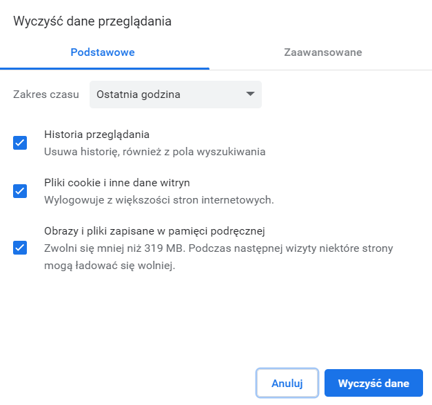 Czyszczenie pamięci przeglądarki: