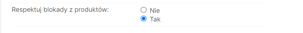 - [ ] Nie – wybór tej opcji oznacza, że integrator nie będzie respektować ustawionych blokad produktu.