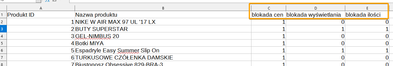 Zwróć uwagę, że 1 oznacza zastosowanie blokady, a 0 jej brak. Upewnij się, że każda wartość jest poprawnie wpisana, aby zapewnić prawidłowe działanie blokad. Pamiętaj, żeby zapisać plik w formacie CSV UTF-8.