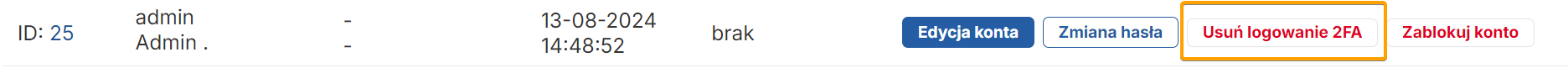 - Kliknij przycisk „Aktywuj logowanie 2FA” obok odpowiedniego konta.