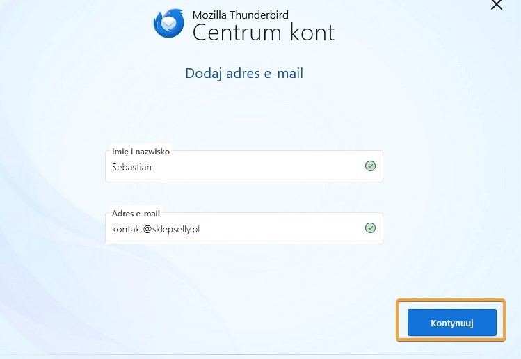 Wpisz swoje imię i nazwisko oraz adres e-mail (np. kontakt@sklepselly.pl).