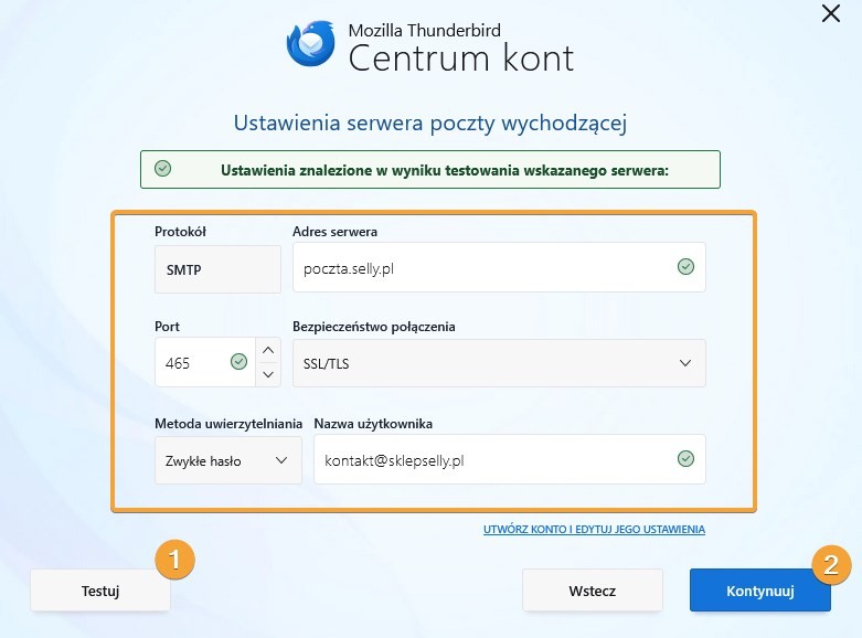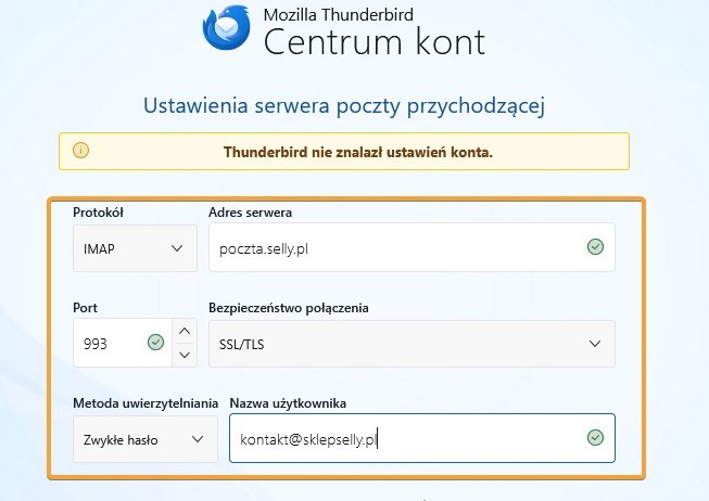 Serwer poczty przychodzącej i wychodzącej: poczta.selly.pl
