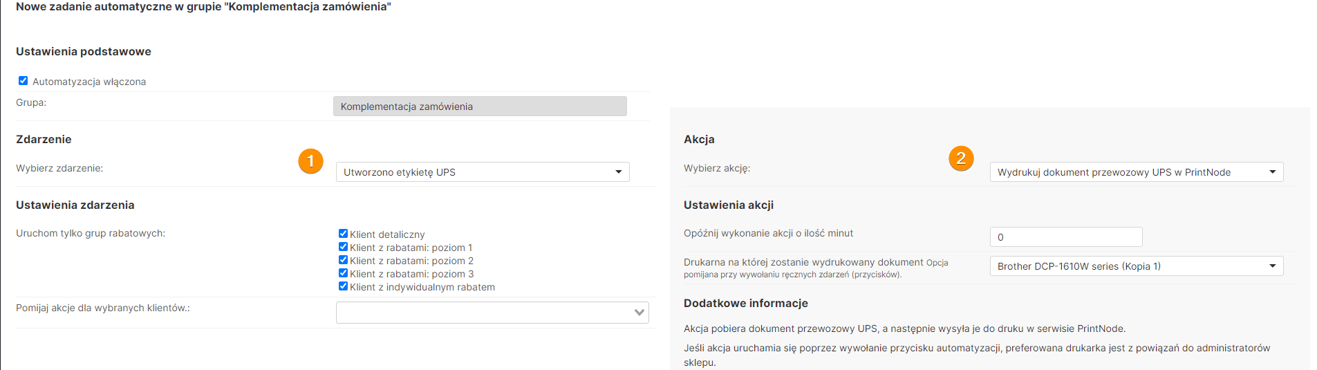 - Dodanie zadania Wydrukuj dokument przewozowy UPS w PrintNode
