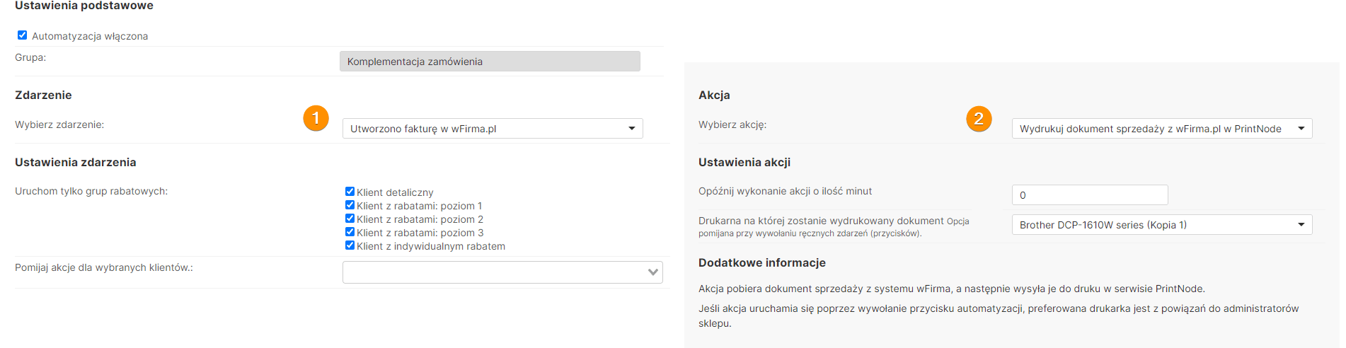 - Dodanie zadania Wydrukuj dokument sprzedaży wFirma.pl w PrintNode