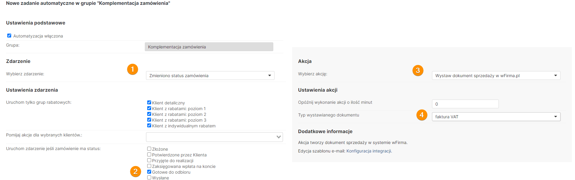 - Dodanie zadania Wystawienia faktury w Wfirma.pl